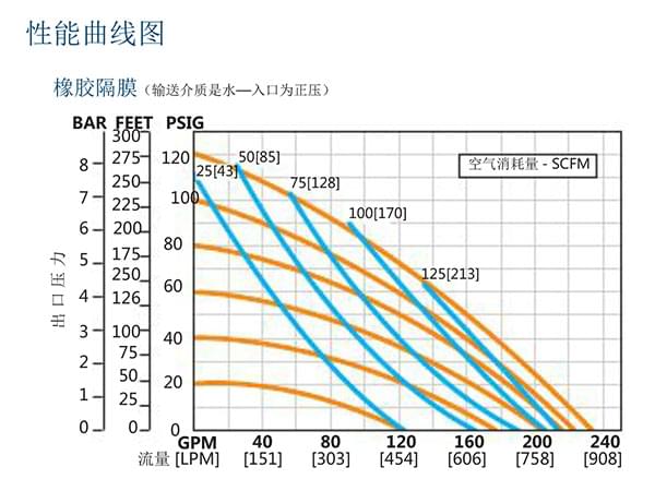 特氟隆PTFE..........................704 lpm ( 186 gpm)