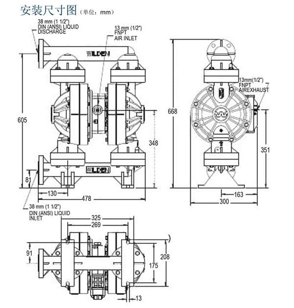介質(zhì)出口尺寸..............................1-1/2” (38 mm)