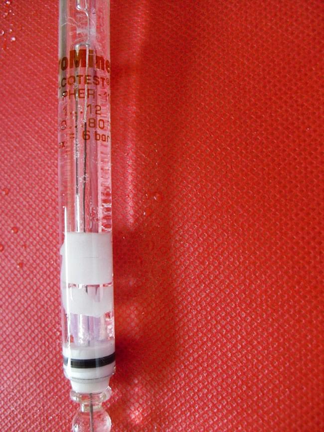 球泡前端不應有氣泡,如有氣泡應用力甩去。